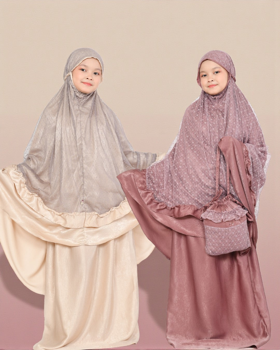 Mukena Zahira Kids is speciaal ontworpen voor kinderen, gemaakt van zachte en lichte Santroni silk met verfijnde tulle details. De ademende stof voelt comfortabel aan en maakt het gebed aangenaam voor jonge meisjes.