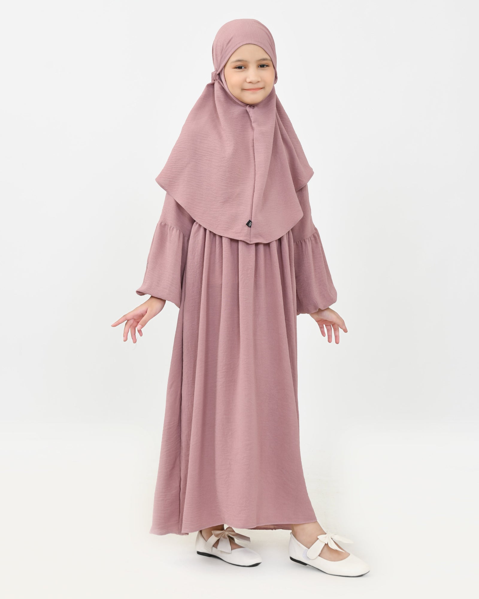 Voor een complete en stijlvolle look is de Khimar Hanah prachtig te combineren met de Abaya Hanah, gemaakt van dezelfde zachte en flowy crinkle stof. Samen vormen ze een tijdloze en elegante set.