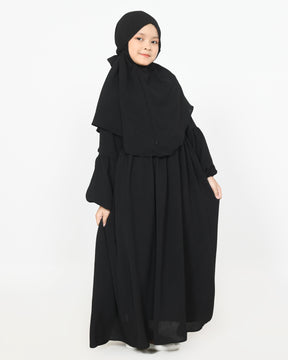 Voor een complete en stijlvolle look is de Khimar Hanah prachtig te combineren met de Abaya Hanah, gemaakt van dezelfde zachte en flowy crinkle stof. Samen vormen ze een tijdloze en elegante set.