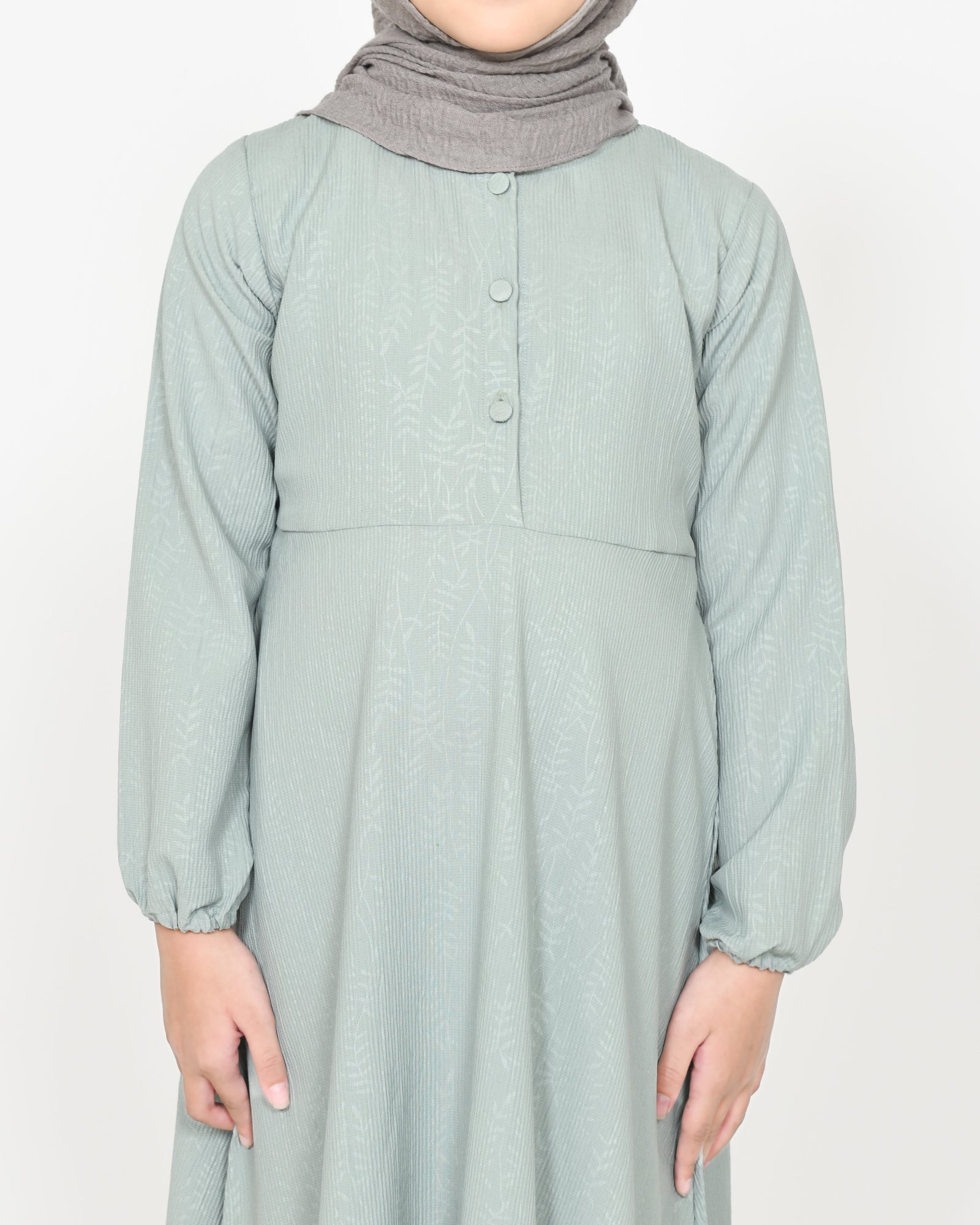 Abaya Amara komt in twee elegante kleuren: dusty pink en sage green, gemaakt van comfortabele prinkle embors stof met een luxe reliëfstructuur. Voorzien van knopen aan de voorkant en een strikband aan de achterkant die de maat aanpast aan je lichaam. Praktische zakken aan beide zijden en elastische mouweun voor maximaal comfort. Het materiaal is kreukbestendig, dus strijken is niet nodig na het wassen. Limited edition, perfect voor een stijlvolle en elegante look!