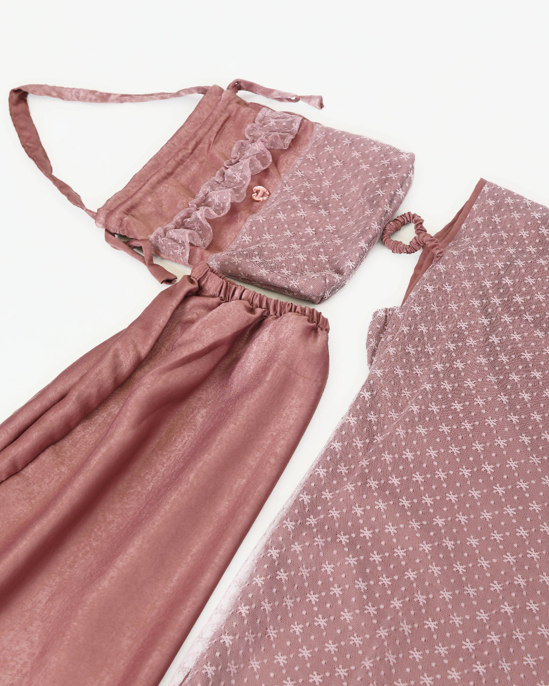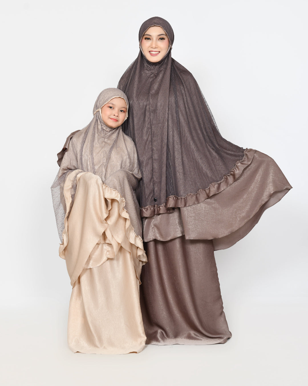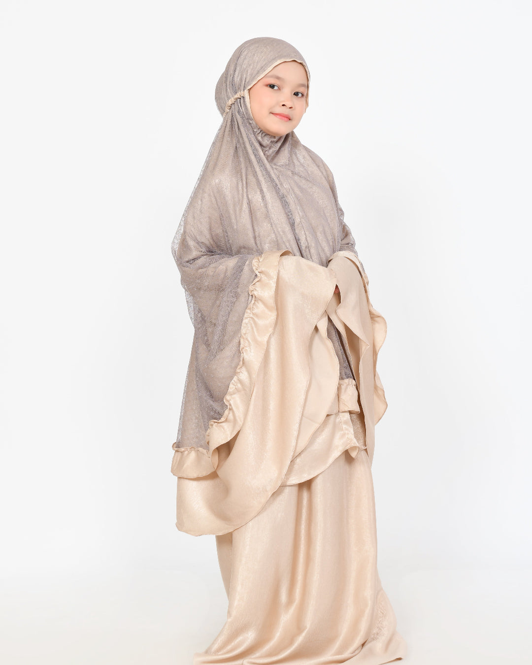 Mukena Zahira Kids is speciaal ontworpen voor kinderen, gemaakt van zachte en lichte Santroni silk met verfijnde tulle details. De ademende stof voelt comfortabel aan en maakt het gebed aangenaam voor jonge meisjes.